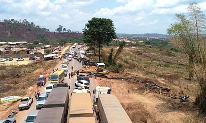 Caminhões e carretas que estão saindo de Mato Grosso – para descarregar no Porto de Mirituba (PA) – estão sendo paradas em um trecho da rodovia federal, na região de Moraes Almeida, no Pará (695 quilômetros de Sinop) por conta de um protesto que está sendo feito pelos garimpeiros há mais três dias. Eles interditaram a via nos dois sentidos e cada seis horas, liberam a passagem dos veículos por uma hora, e depois, retomam o bloqueio.