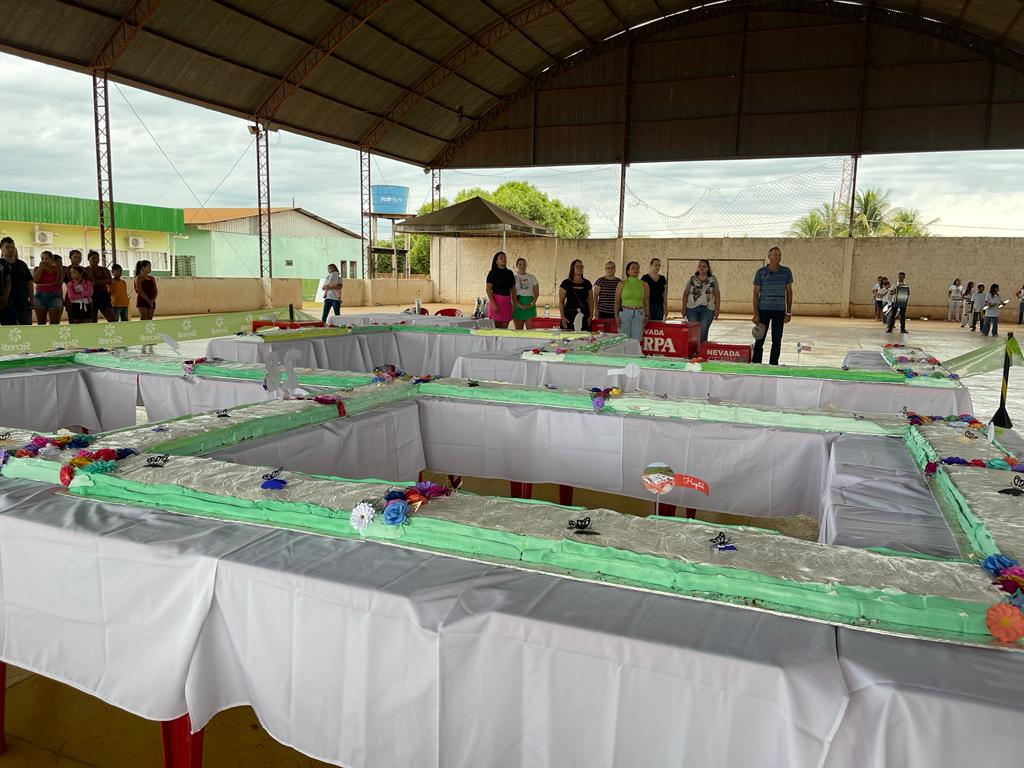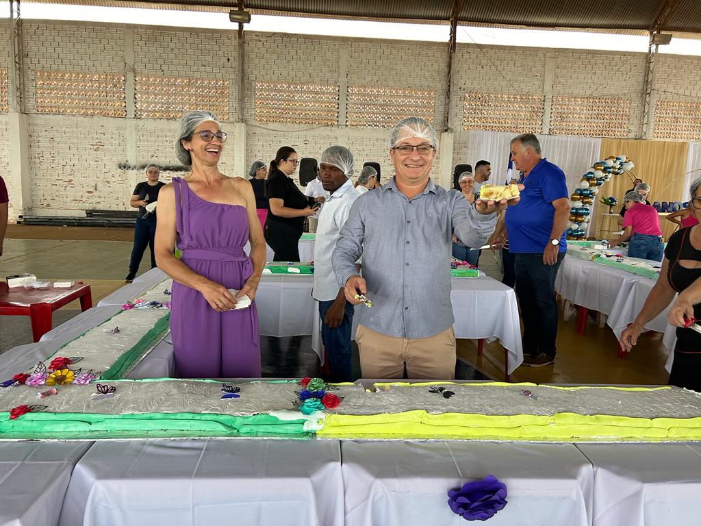 Durante a festividade foi realizado o tradicional corte do bolo de 28 metros