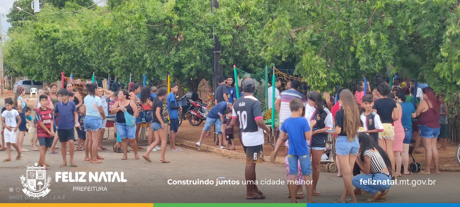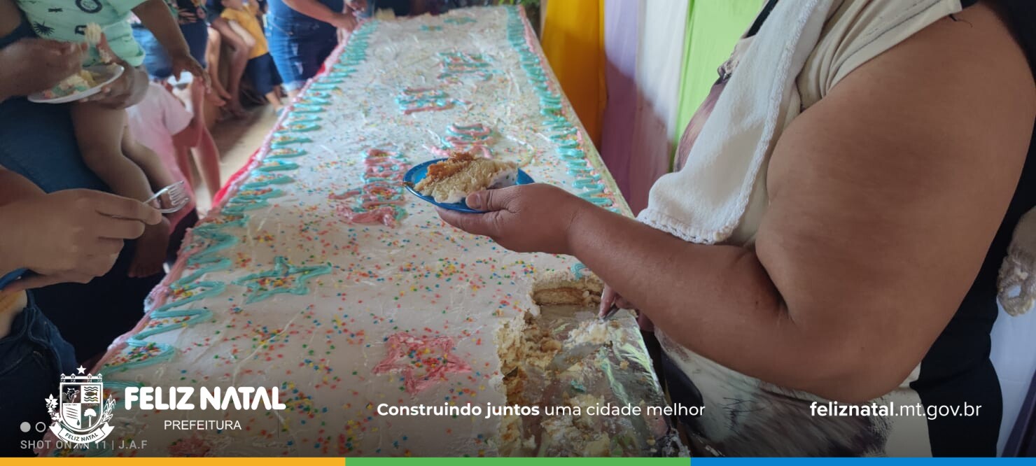Com um bolo de aproximadamente sete metros, diversão e muitas guloseimas, as famílias que moram na Cohab puderam celebrar a Festa do Dia das Crianças na tarde de quarta-feira, 12 de outubro. Em sua 17ª edição, a festa realizada pelas moradoras Sônia Rodrigues e dona Domingas, conta com o apoio da prefeitura municipal de Feliz Natal.