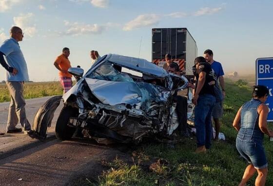 Um grave acidente envolvendo um automóvel e três carretas foi registrado na tarde deste sábado (05), por volta das 16h55, no Km 647 da BR-163, em Lucas do Rio Verde/MT