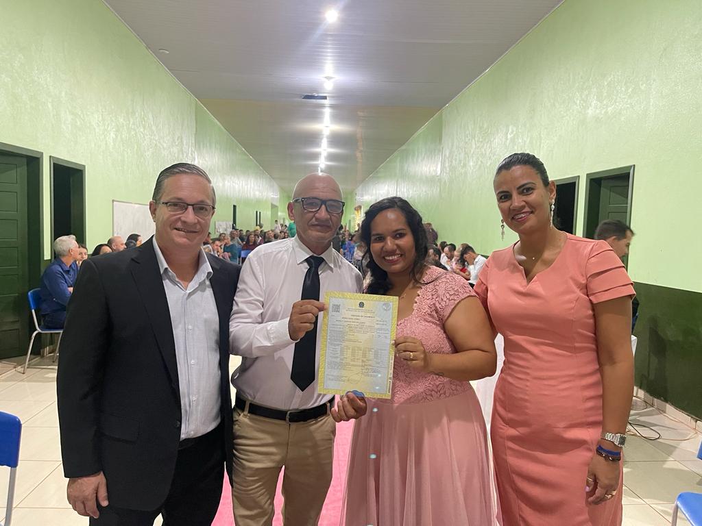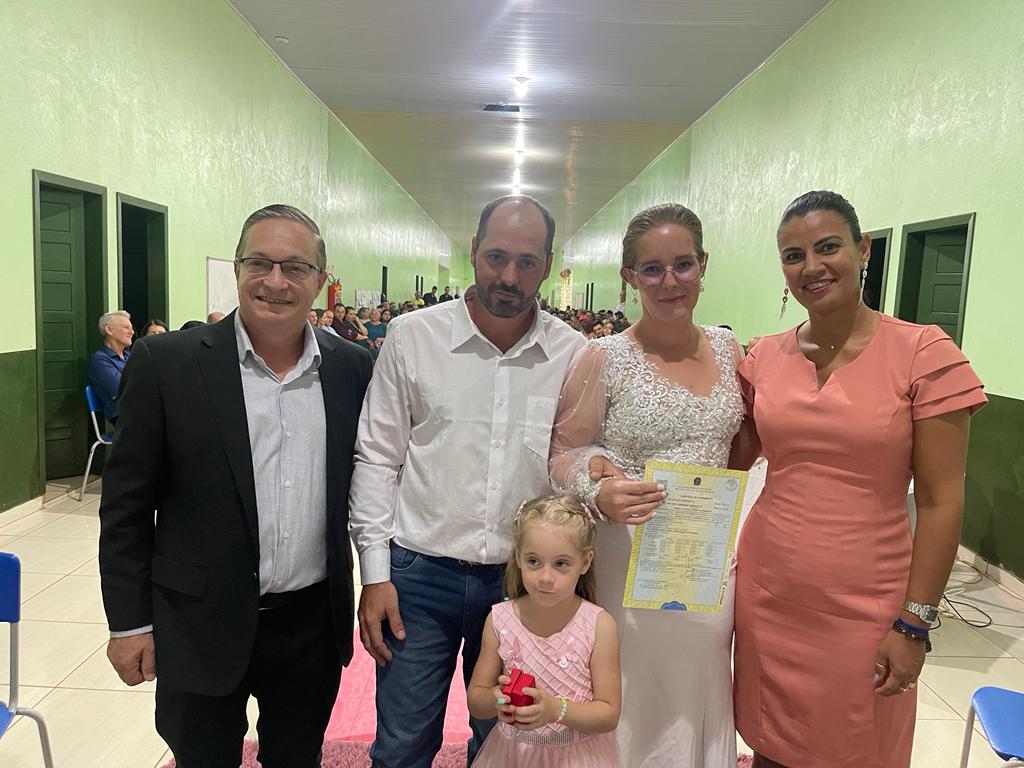 Na noite deste sábado (29.07), a Prefeitura Municipal de Nova Ubiratã, por meio da Secretaria de Assistência Social, realizou o Casamento Social no distrito de Entre Rios. Estavam presentes na cerimônia do Casamento, o Prefeito Municipal, Edegar José Bernardi, a Secretária de Assistência Social, Marqueli de Souza Carvalho, no qual, os mesmos também foram testemunhos dos noivos, estavam presentes também, o Secretário de Governo, Amnom Kislon e o Vereador, Jozias da Fonseca.