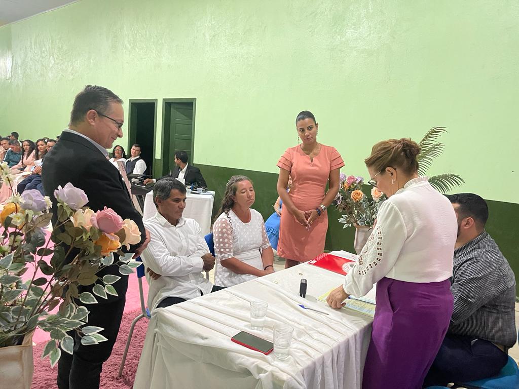 O Casamento Social foi relizado pelo Tabelião do Cartório do 2º Ofício, Lucas Mateus dos Santos, e pela Juíza da Paz de Nova Ubiratã, Irene Mota Fransisconi. O Prefeito Municipal destacou a honra em participar do casamento. “Para mim é uma honra estar participando deste evento, um momento muito importante não só para vocês, mas também para os seus filhos e para toda comunidade, Que Deus continue abençoando os lares e o amor de todos os casais. Meus agradecimentos especiais ao Ely Gonçalves, por todo empenho para que esse evento pudesse acontecer”, expôs Edegar.