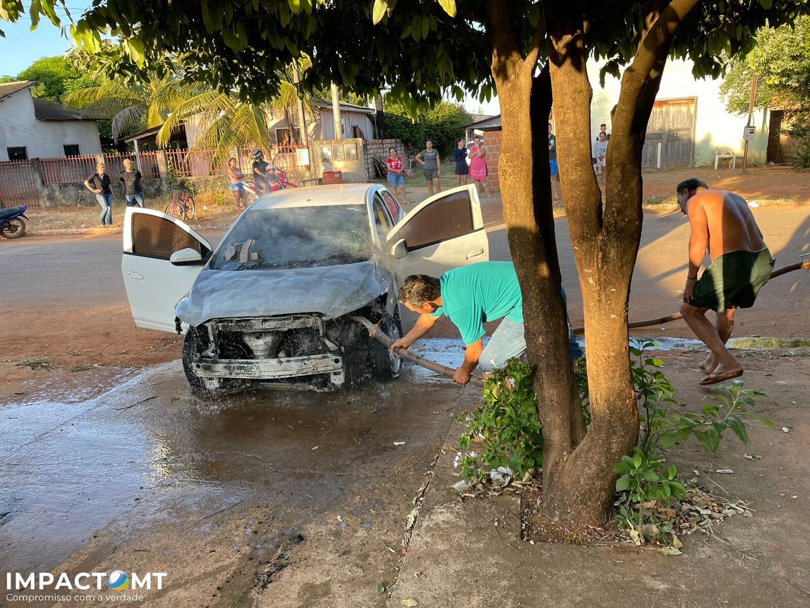 Na manhã deste domingo (01/05) por volta das 6:00 da manhã um carro foi incendiado na rua São Paulo no Cntero de Nova Ubiratã. No local foi encontrado um Gol totalmente em chamas, e a equipe do IMPACTO MT, uma jovem de aproximadamente 22 anos assumiu ter sido a autora do incêndio, pois havia brigado com seu marido e que por motivos de fúria cometeu o ato.