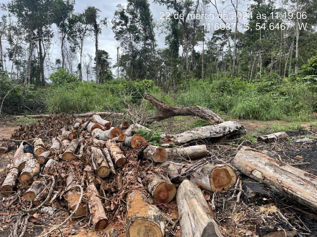 No local, as equipes encontraram diversas toras de madeira e um barracão improvisado utilizado pelas vítimas. Além de uma motosserra, uma luneta, e diversos utensílios para equipamentos de arma de fogo. À PM, eles contaram que não possuem autorização de nenhum órgão competente para o desmate.