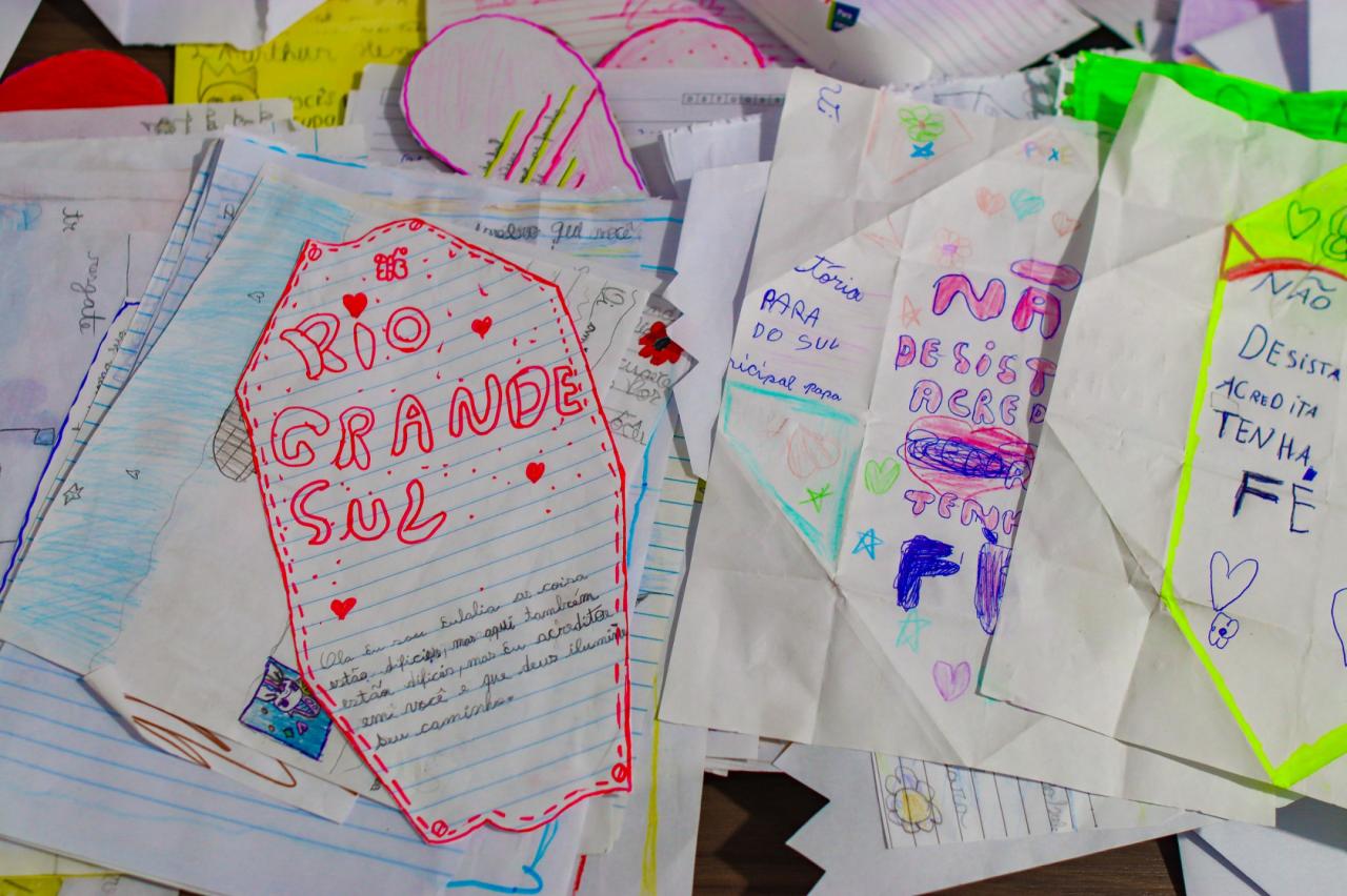 Além de roupas, alimentos, remédios e outras necessidades, uma palavra de amor e de solidariedade neste momento também se torna importante aos desabrigados do Rio Grande do Sul. E é com esse sentimento, de querer ajudar, mesmo que de longe, que os alunos da Escola Municipal Papa João Paulo II se mobilizaram para elaborar cartinhas e expressar seu gesto de apoio aos coleguinhas vítimas das fortes chuvas no estado.