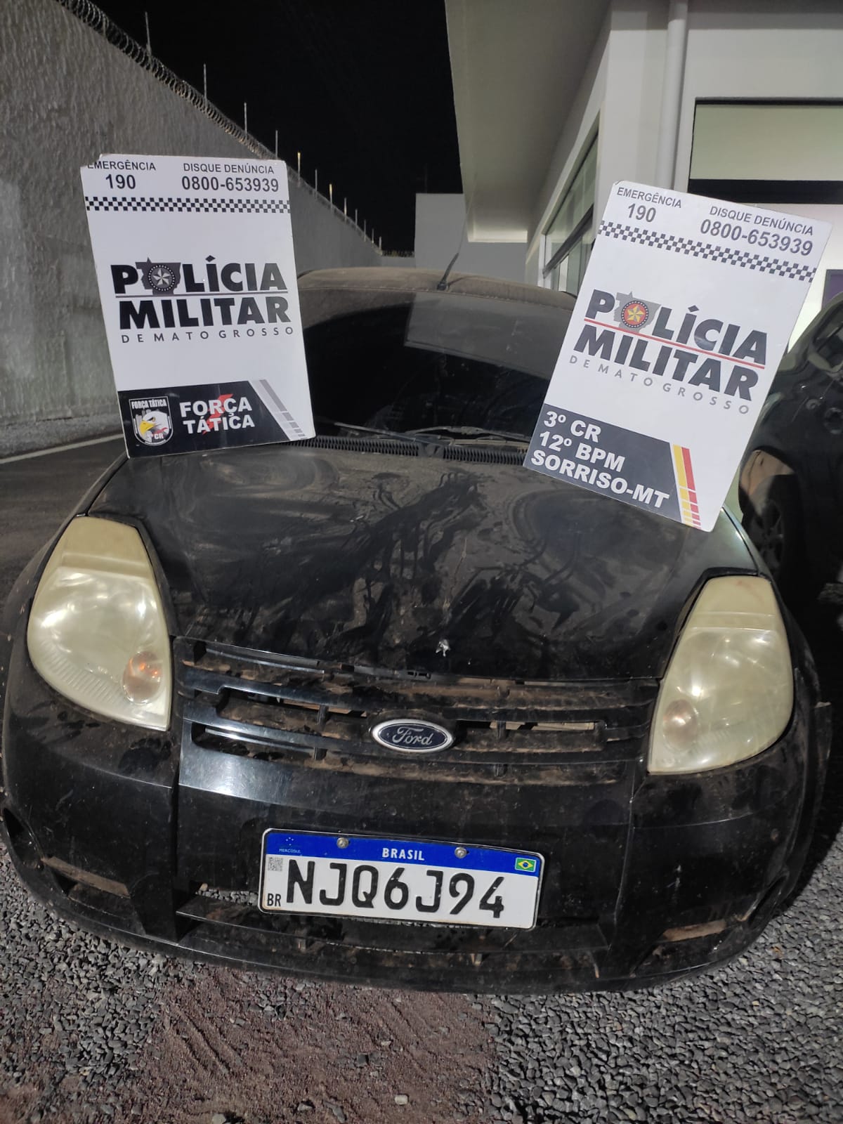 Após uma tentativa de homicídio de um jovem, de 26 anos, no bairro Industrial, se iniciaram buscas para localizar os suspeitos que foram identificados pelo serviço de monitoramento e estavam em um carro modelo Ford Ka preto.