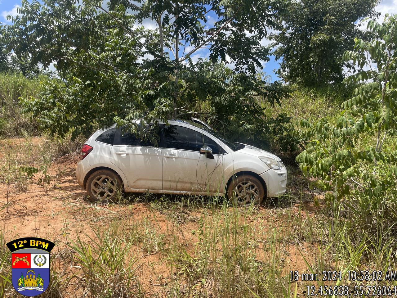 O veículo foi encontrado em meio à mata, com sinais de abandono. O Citroen C3 foi encaminhado para a Delegacia de Polícia Civil de Sorriso.