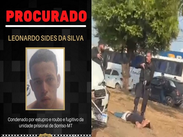 O suspeito foi capturado pela Polícia Penal foi identificado como Leonardo Sides da Silva, de 22 anos, fugitivo do Centro de Ressocialização de Sorriso (CRS). Condenado por estupro e roubo, ele escapou da instituição no dia 19 de julho, enquanto realizava trabalhos de pintura na fachada do centro.