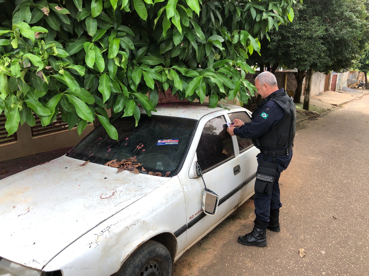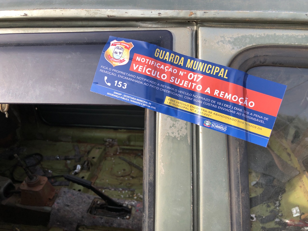 A Guarda Municipal conforme determinação da Lei Municipal de veículos abandonados, após ter realizado o auto de constatação, iniciou-se a adesivagem de notificação nos veículos abandonados, na qual serão removidos caso não retirado dentro do prazo estipulado.