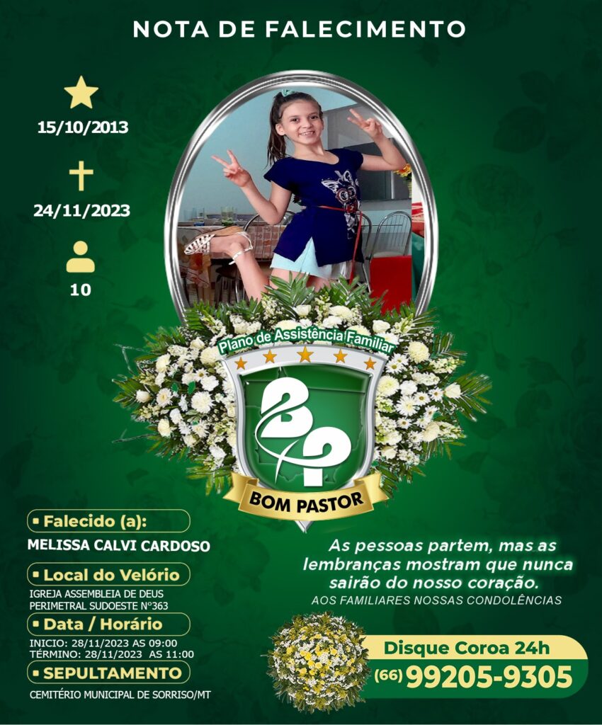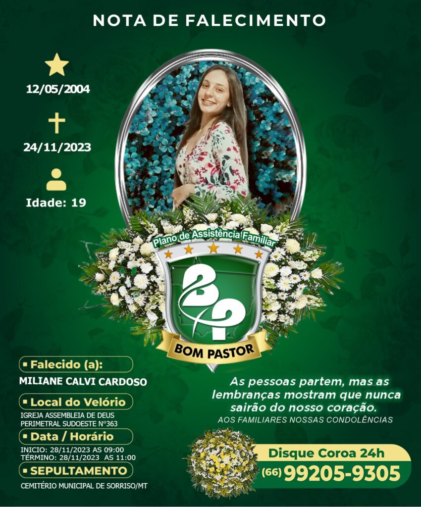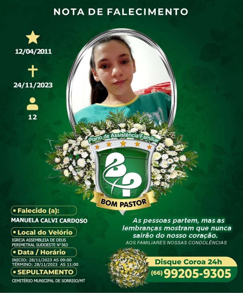 Os corpos de Clecy Calvi Cardoso, 46 anos; e suas filhas Miliani Calvi Cardoso, 19 anos; Manuela Calvi Cardoso, 13; Melissa Calvi Cardoso, 10 anos estão sendo velados na Igreja Assembleia de Deus na Perimetral Sudoeste a partir das 08:00h desta terça-feira (28/11) e o sepultamento será às 11:00h no cemitério municipal.
