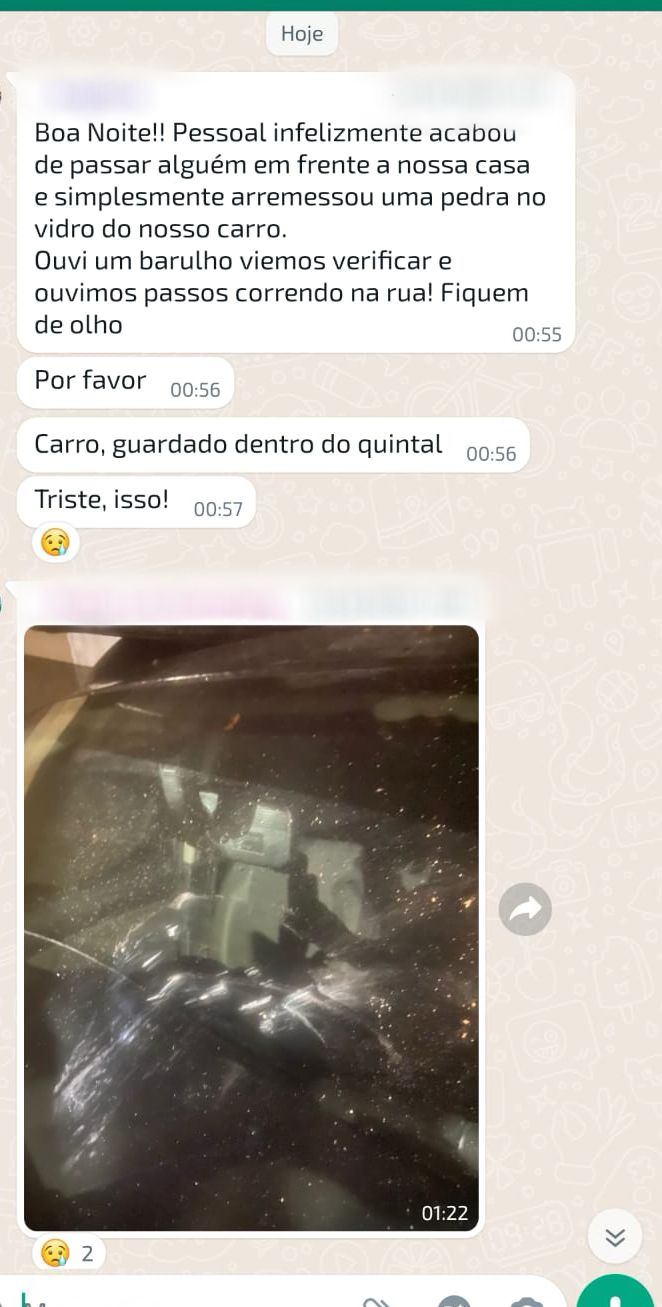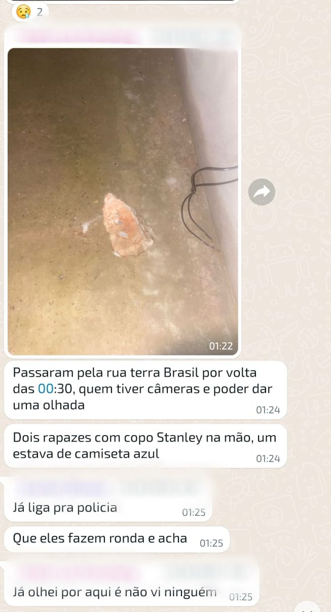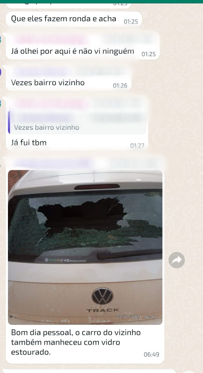 Preocupados, os moradores encaminharam as conversas do grupo do bairro como uma forma de pedido de ajuda, já que não sabem o que fazer para que quem está fazendo isso na região pare.