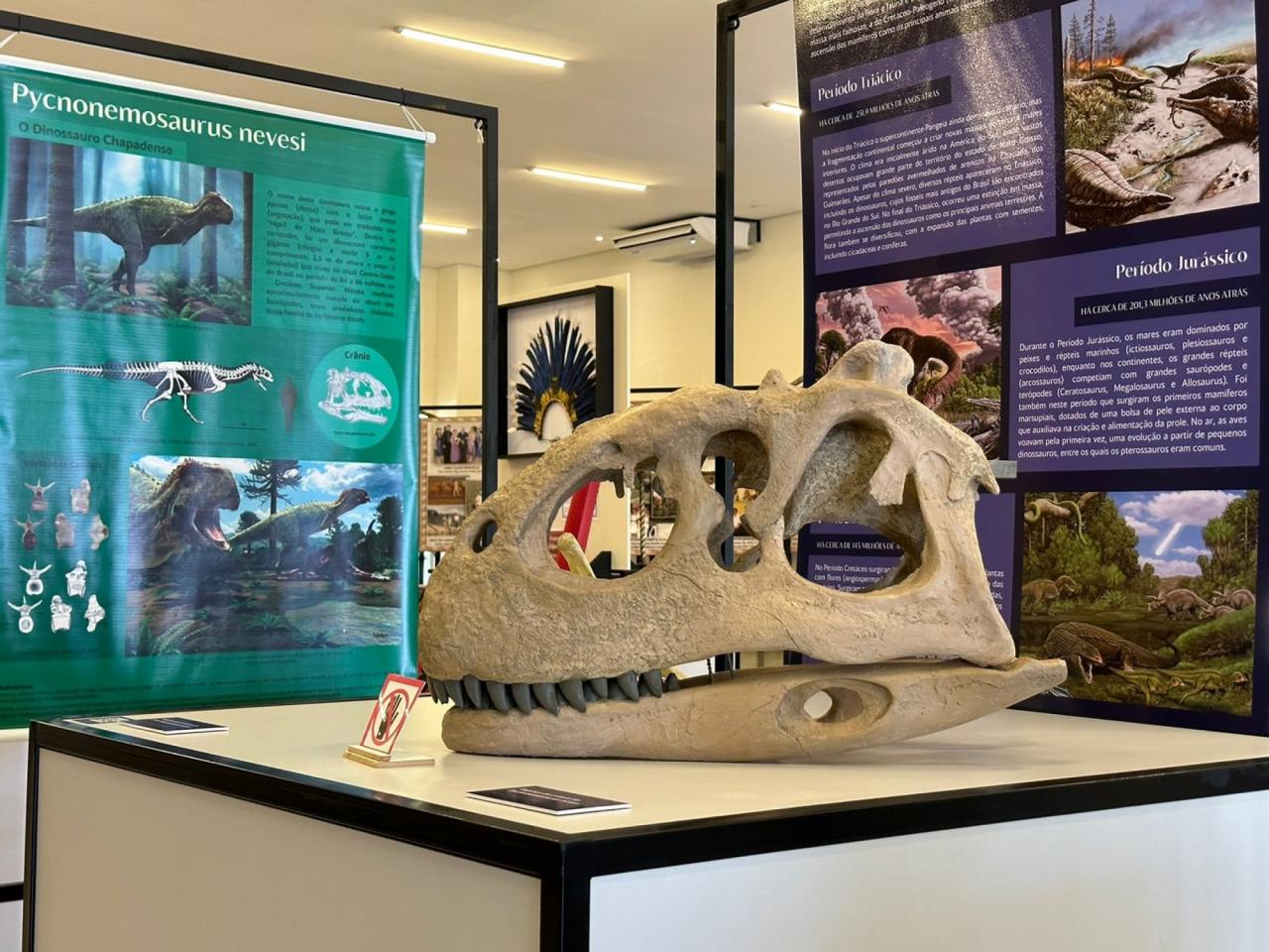 Ao todo, a exposição conta com mais de 60 peças que compõem o acervo permanente do Museu de História Natural de Mato Grosso. São réplicas e fosseis de dinossauros, além de outras espécies nativas de nossa região, que ficarão expostas ao público até 15 de setembro