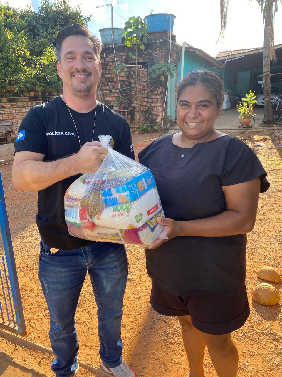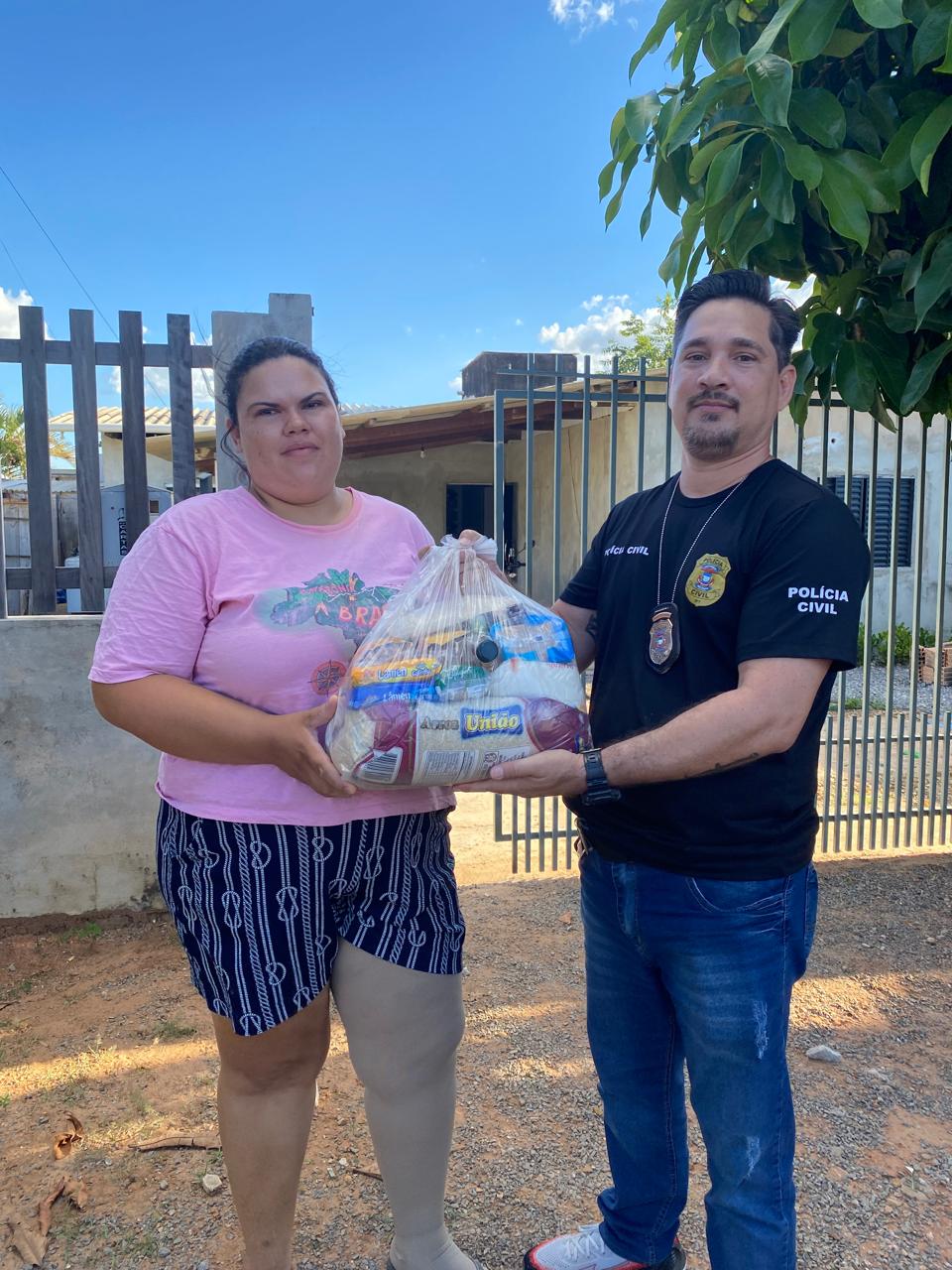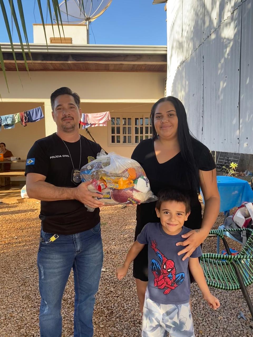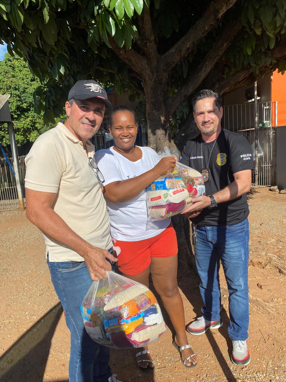 As cestas básicas do crime, que também são usadas para "bastecer" as casas de familiares dos faccionados, foram entregues para a população carente pelos investigadores da Polícia Civil.