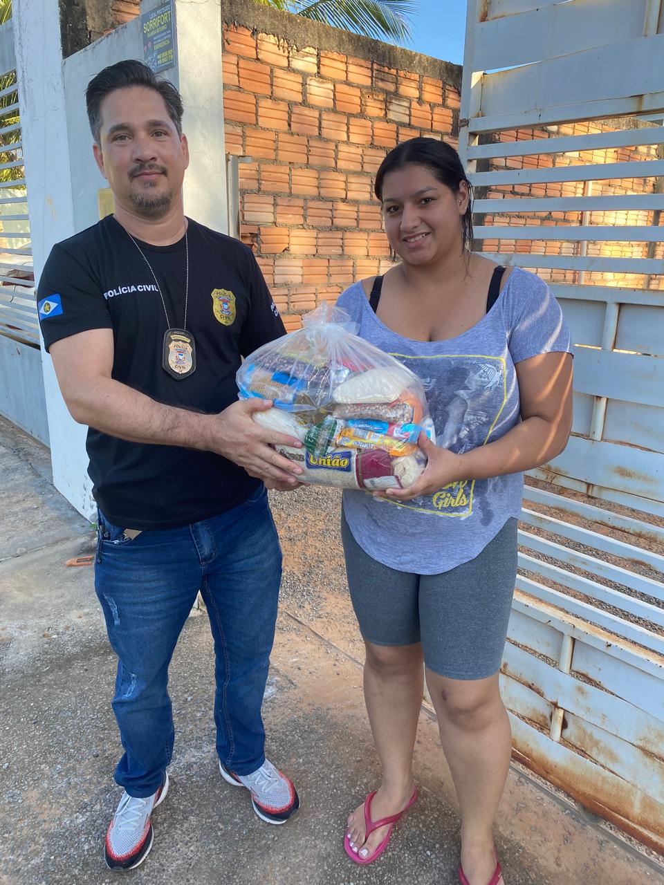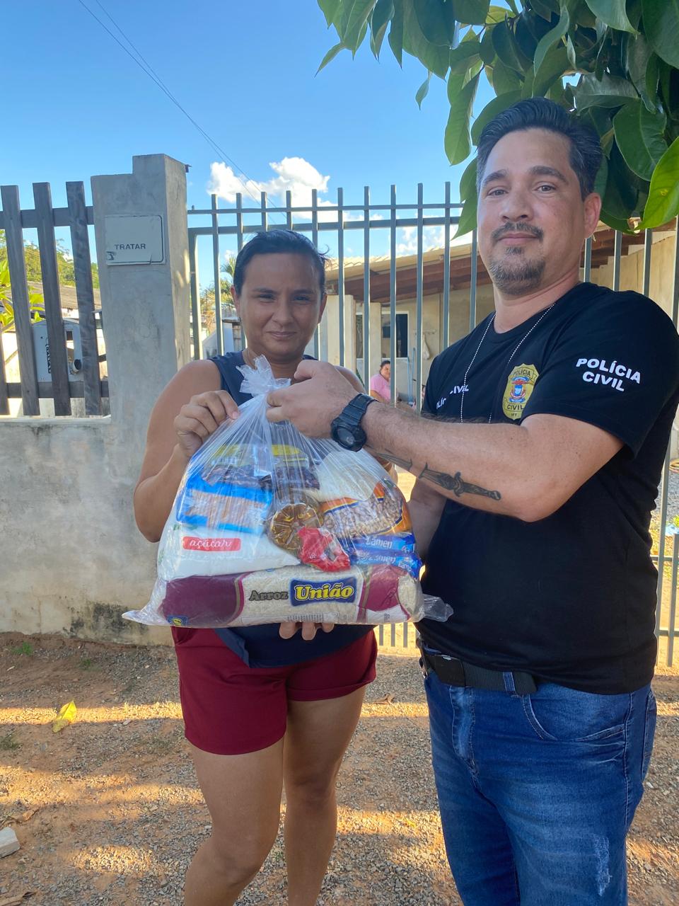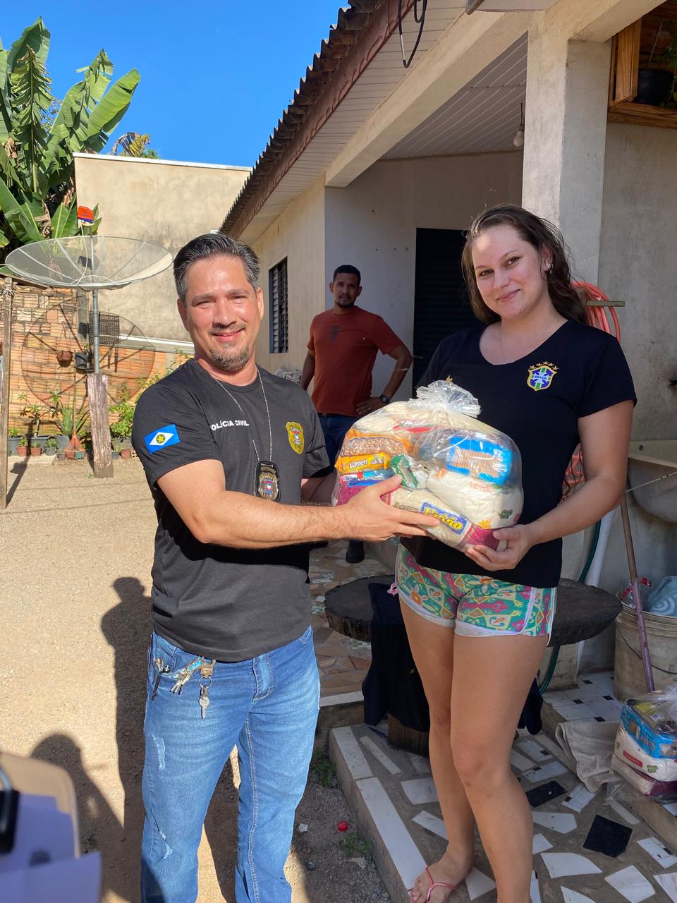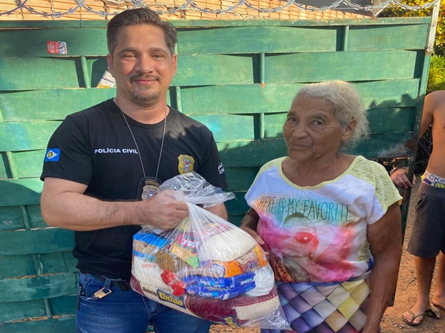 As cestas básicas do crime, que também são usadas para "bastecer" as casas de familiares dos faccionados, foram entregues para a população carente pelos investigadores da Polícia Civil.