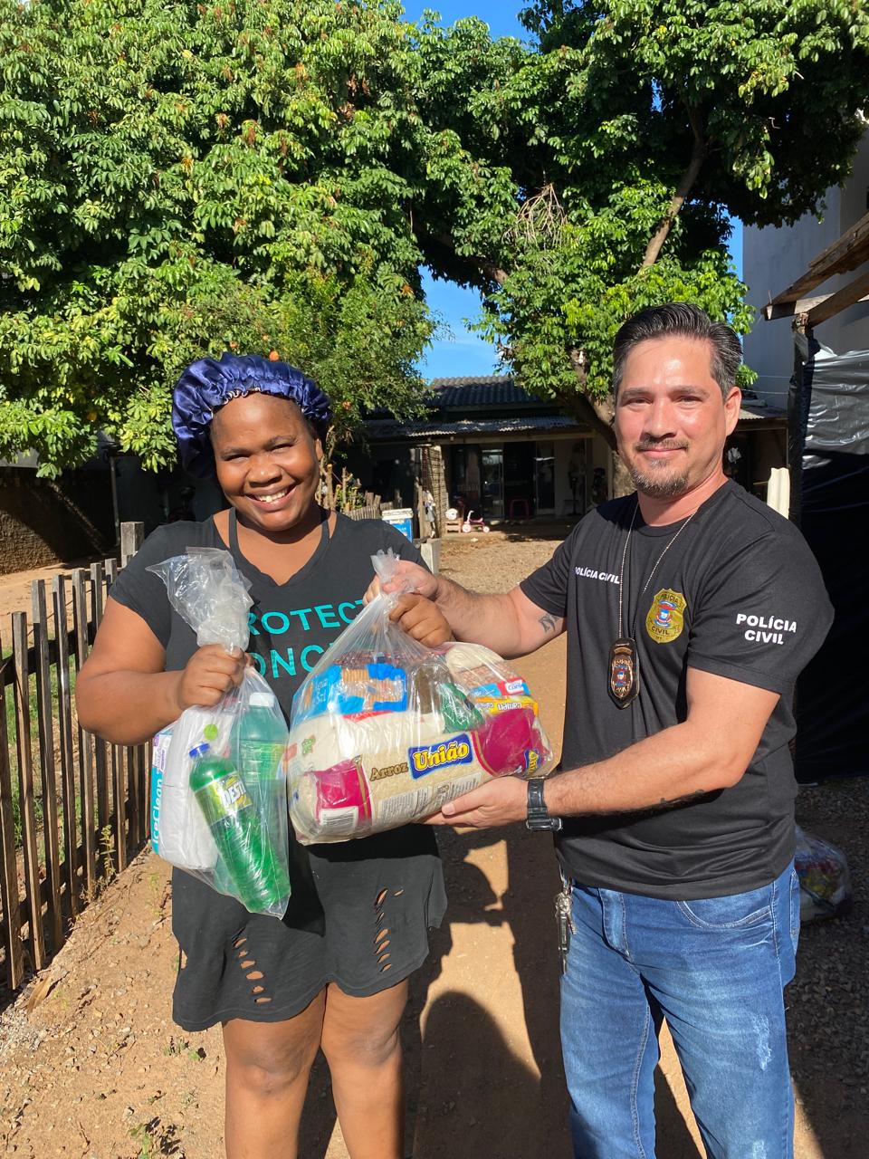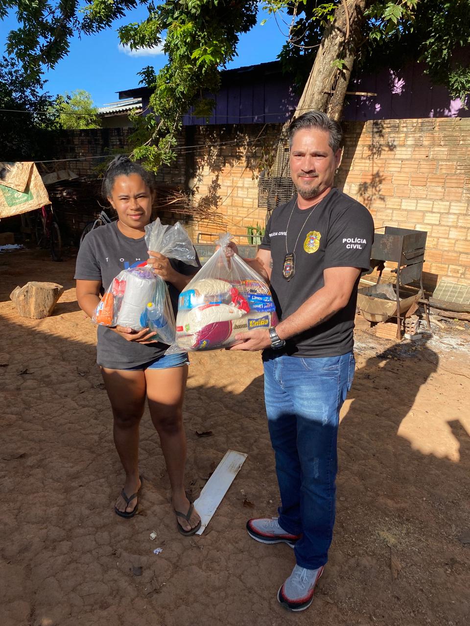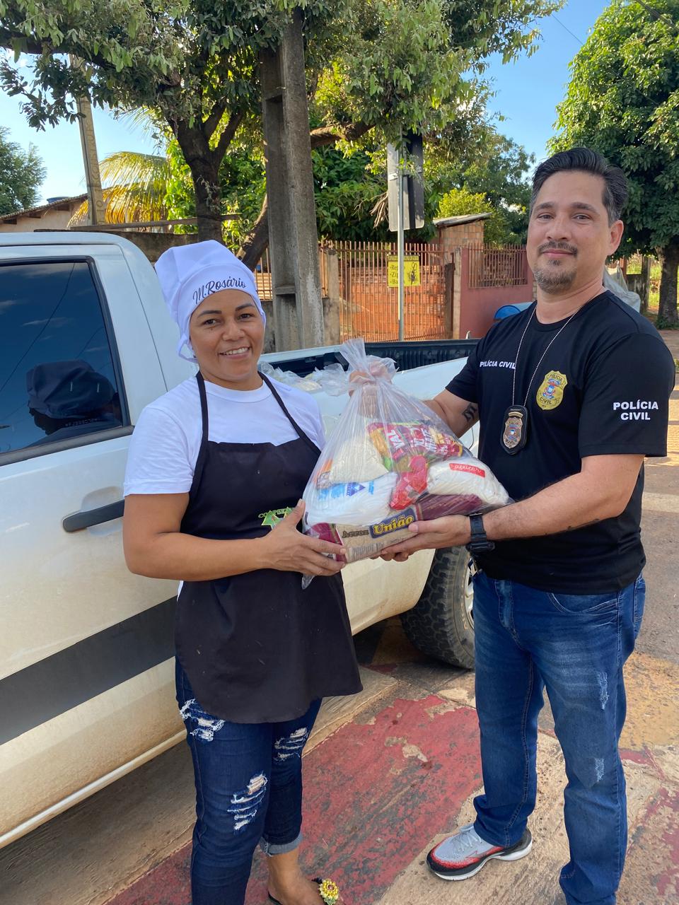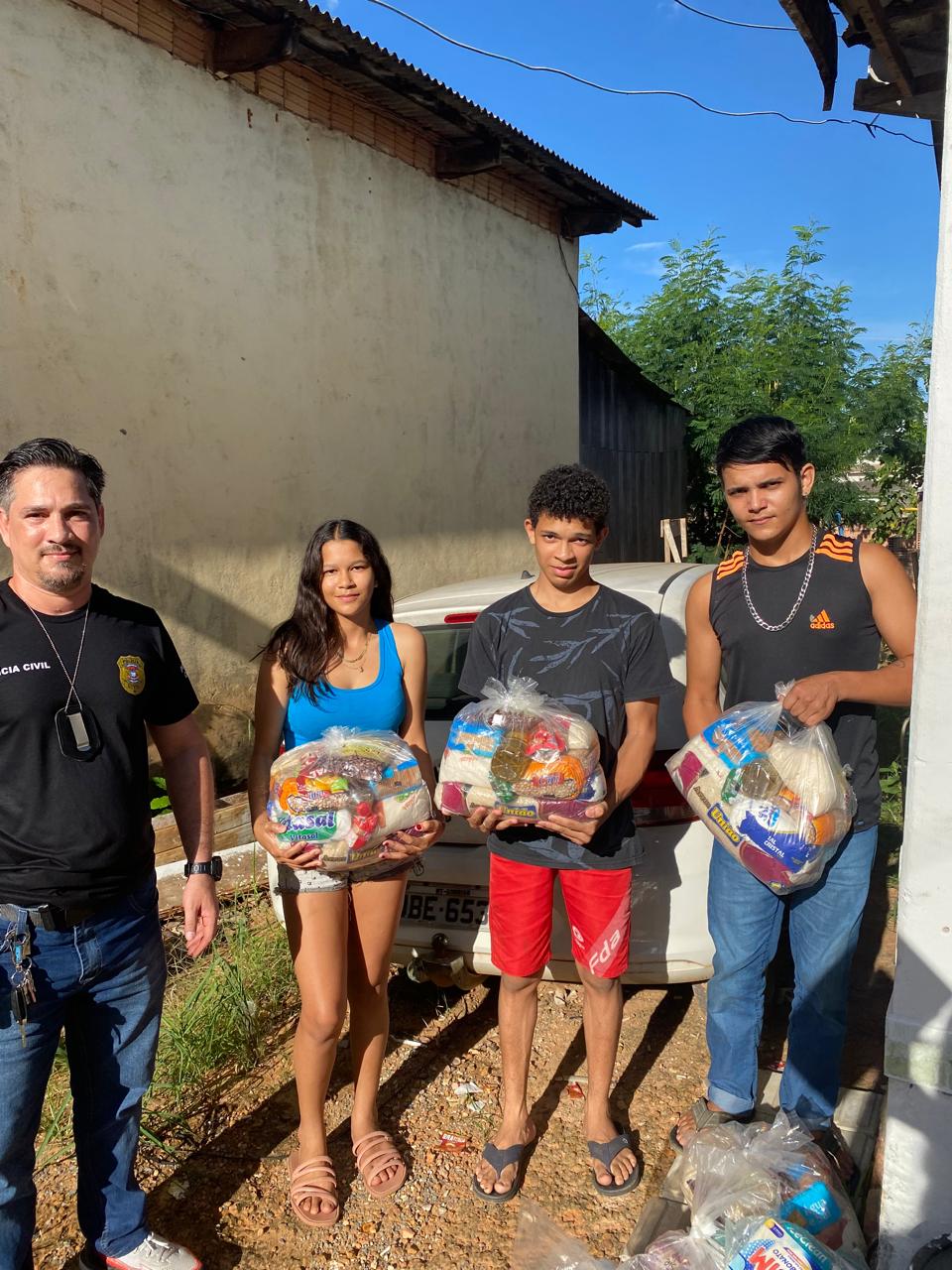As cestas básicas do crime, que também são usadas para "bastecer" as casas de familiares dos faccionados, foram entregues para a população carente pelos investigadores da Polícia Civil.