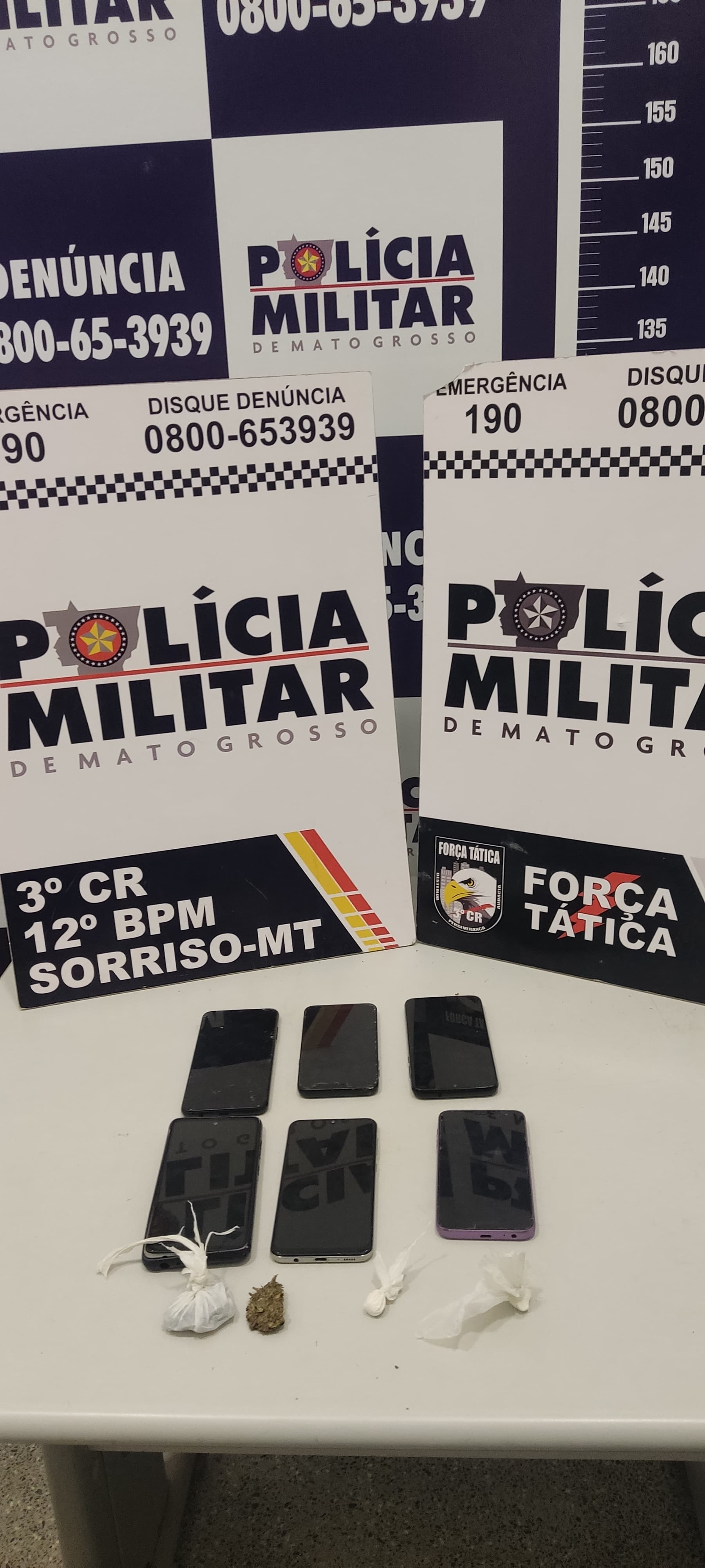 Diante da situação, foi dada voz de prisão aos suspeitos que foram conduzidos e entregues na Delegacia de Polícia Civil para demais providências.