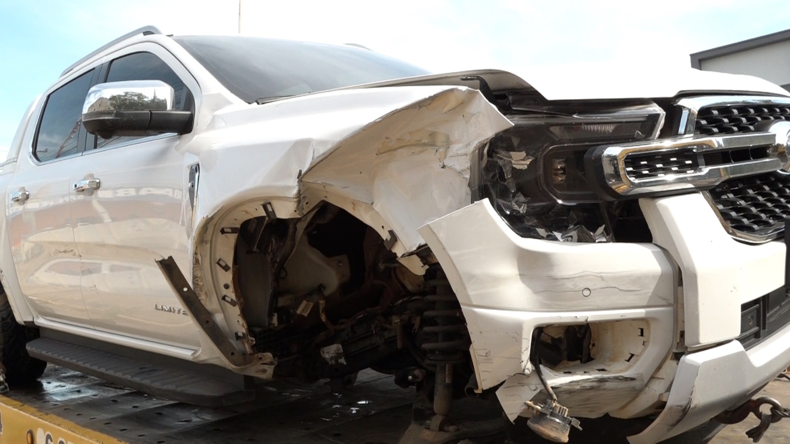 Com a falha mecânica, a caminhonete colidiu contra um Hyundai HB20 branco que estava estacionado na via. Apesar da colisão, o motorista da Ranger não sofreu ferimentos.