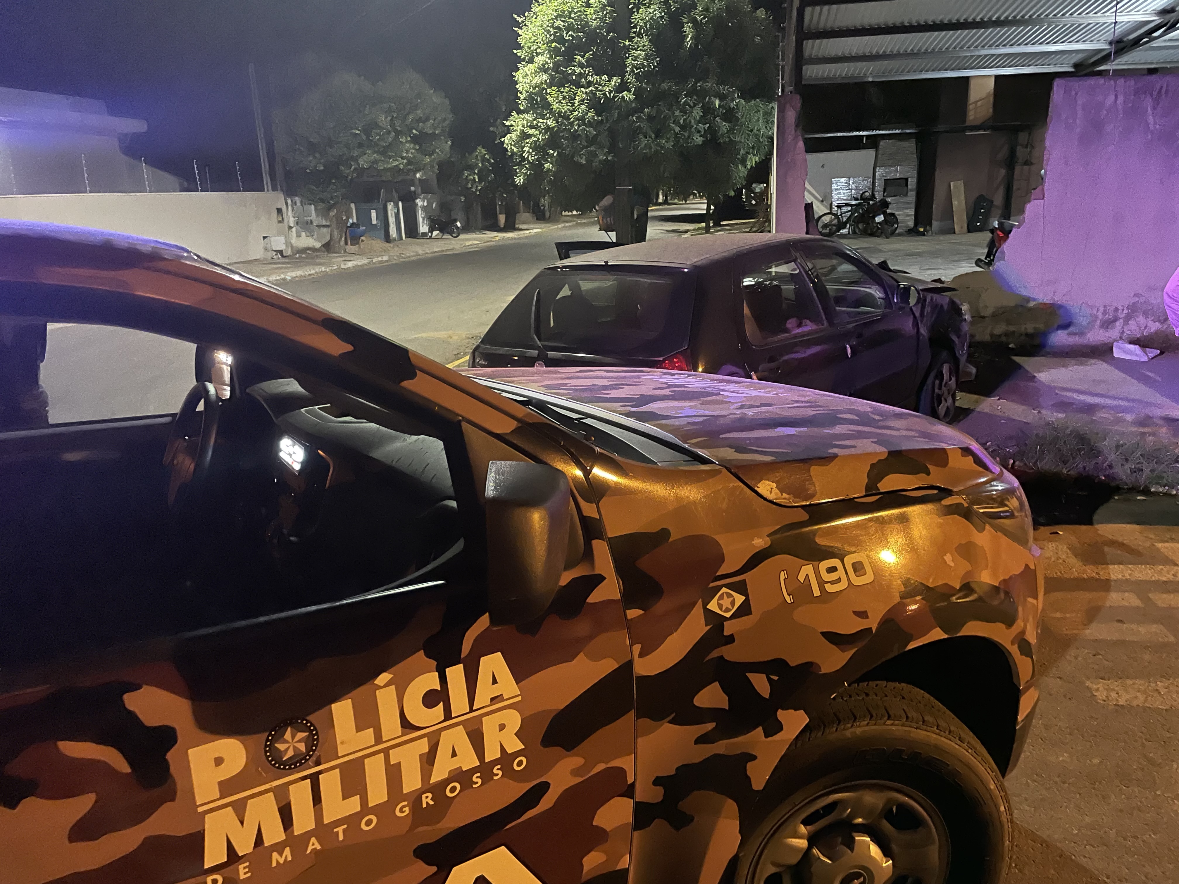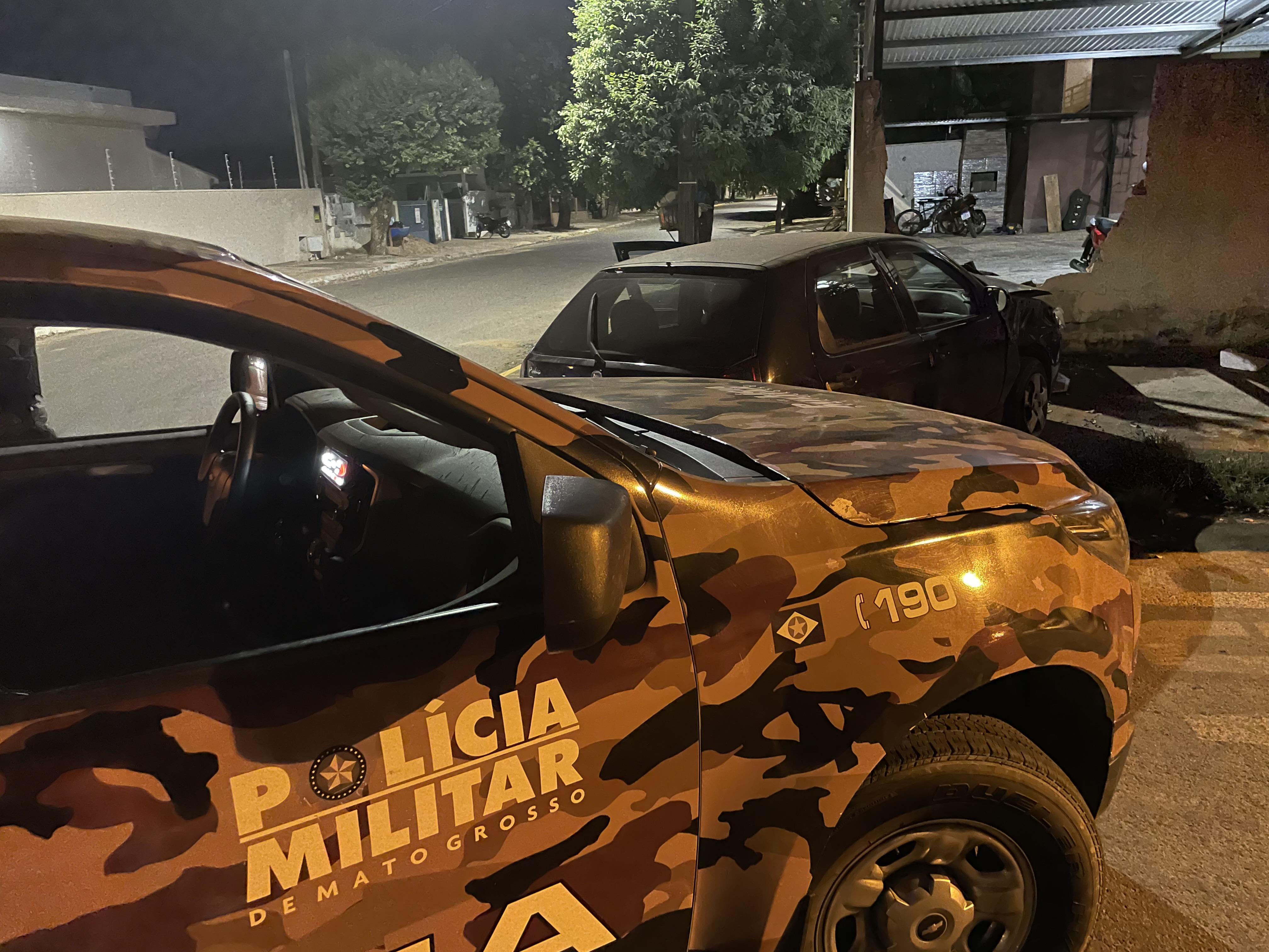 A colisão entre uma camionete GM S-10, da Policia Militar é um Fiat Palio, preto, ocorreu na noite desta terça-feira (10) na Rua Ataulfo Alves com Rua das Videiras, no bairro Alvorada em Sorriso.